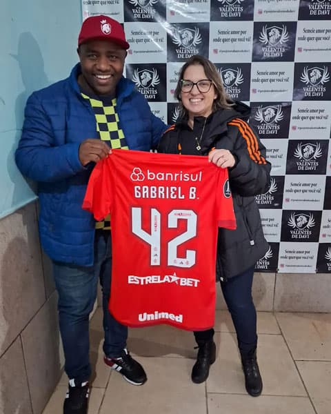 Ação visa auxiliar projeto social em Porto Alegre  O atacante Gabriel Barros, junto a todo o elenco do Internacional, participa de ação...